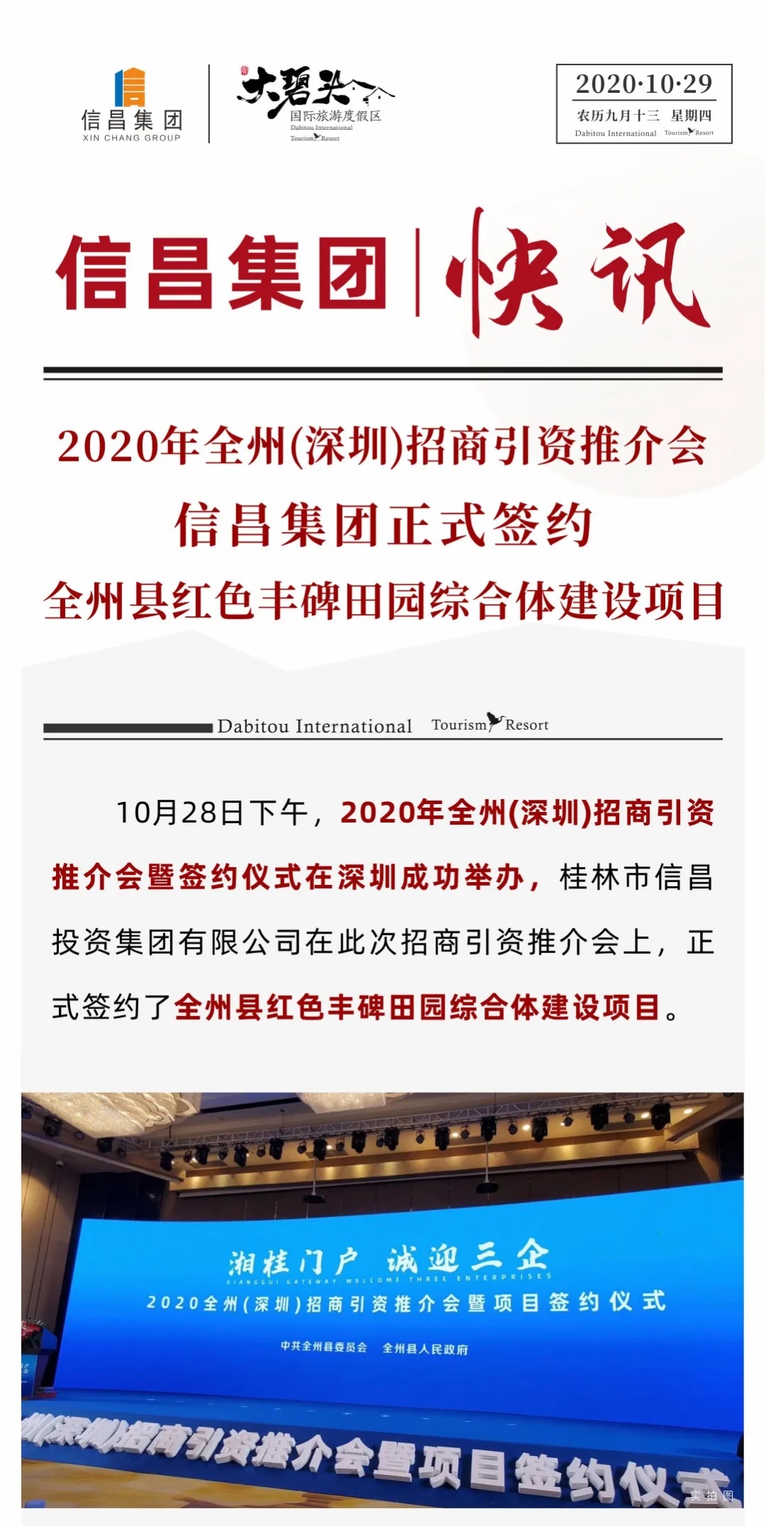 【大碧頭快訊】2020年全州(深圳)招商引資推介會上,信昌集團正式簽約全州縣紅色豐碑田園綜合體建設項目