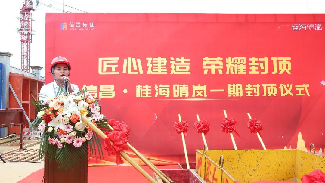 封頂儀式上,桂海晴嵐項目總經(jīng)理陶素英女士上臺致辭,她表示:“信昌·桂海晴一期榮耀封頂,標(biāo)志著項目建設(shè)踏入新的里程碑,同時也預(yù)示著業(yè)主離夢想之家更進(jìn)一步。這不僅僅是一次封頂儀式,更是美好承諾的兌現(xiàn),是一城期待的實現(xiàn)?!?/span>