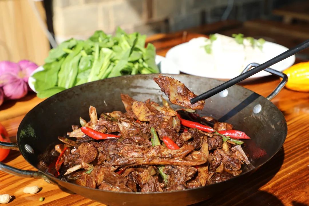 大碧頭的美食吃在自然原生態(tài),山間生長(zhǎng)的雞鴨鵝、扎根于自然間的蔬果,造就一道道味美飄香的美食。坊間有著不可錯(cuò)過的醋血鴨,兩度榮登央視是它的金字招牌。酸香入味,一口下去有著難以言喻的滿足感,廣受游客的好評(píng)。