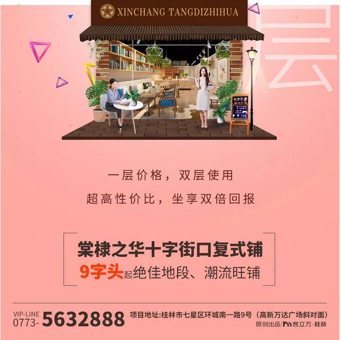 棠棣之華十字街口復(fù)式鋪,單層價格,雙層使用空間!