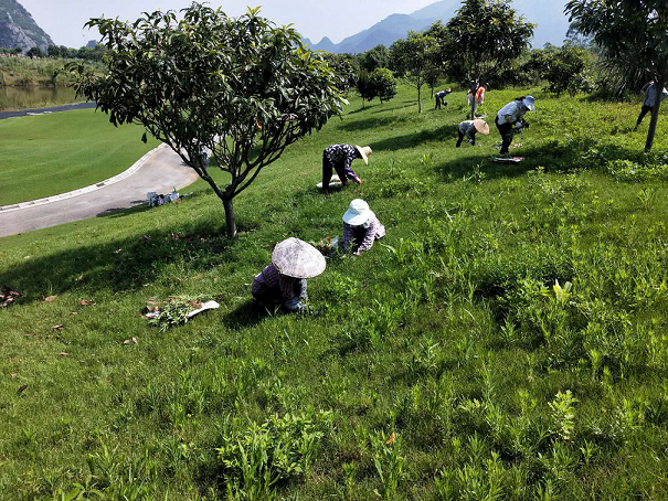 養(yǎng)護是很辛苦的工作,他們用汗水澆灌著每一寸草地。他們用自己勤勞的雙手養(yǎng)護著每一寸草地、每一個物件和每一棵花草。汗水浸透了他們的衣衫,太陽曬傷了他們的皮膚。他們不怕苦、不怕累、不怕曬,把干凈和舒適留給了草地,把污濁留給了自己。