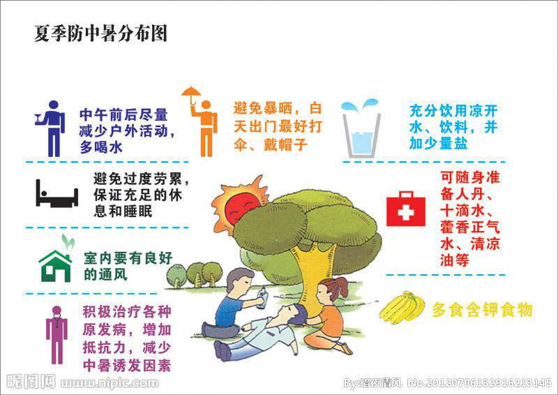 夏天來了,天氣炎熱,對(duì)于工程部人員來說,防暑最重要,前兩天部門員工因中暑住院了,所以,在網(wǎng)上摘抄了幾點(diǎn)防暑知識(shí)。如下: