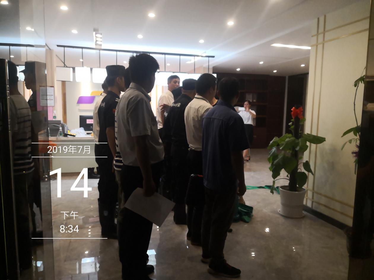 一小部分水進入到負二層地下室,為防止雨水進入電梯造成更大的損失,電梯公司停止了電梯的運行,統(tǒng)一將電梯升至負一層,電梯底坑少量積水,為快速恢復電梯,在集團公司領導快速響應、指導下,2019年7月14日,棠棣之華項目部、物業(yè)公司、電梯公司日夜奮戰(zhàn)在第一線,調(diào)配能調(diào)動的所有資源,扛沙袋、清垃圾、處理積水,一定要確保在7月14日恢復所有停運的電梯,保障業(yè)主的正常出行!
