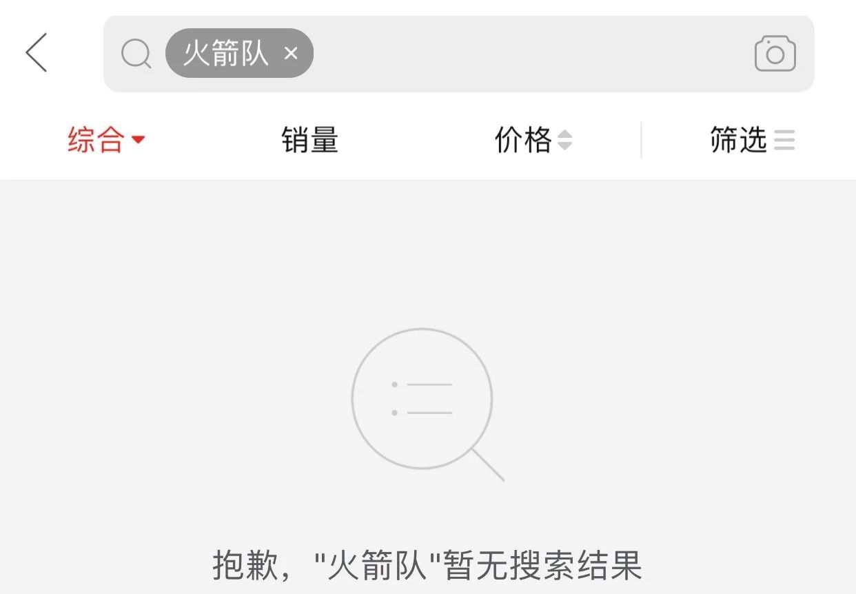 另外還有網(wǎng)友發(fā)現(xiàn),京東、拼多多等網(wǎng)站搜索”火箭隊(duì)“相關(guān)詞匯,也已經(jīng)無(wú)法匹配到正確結(jié)果。
