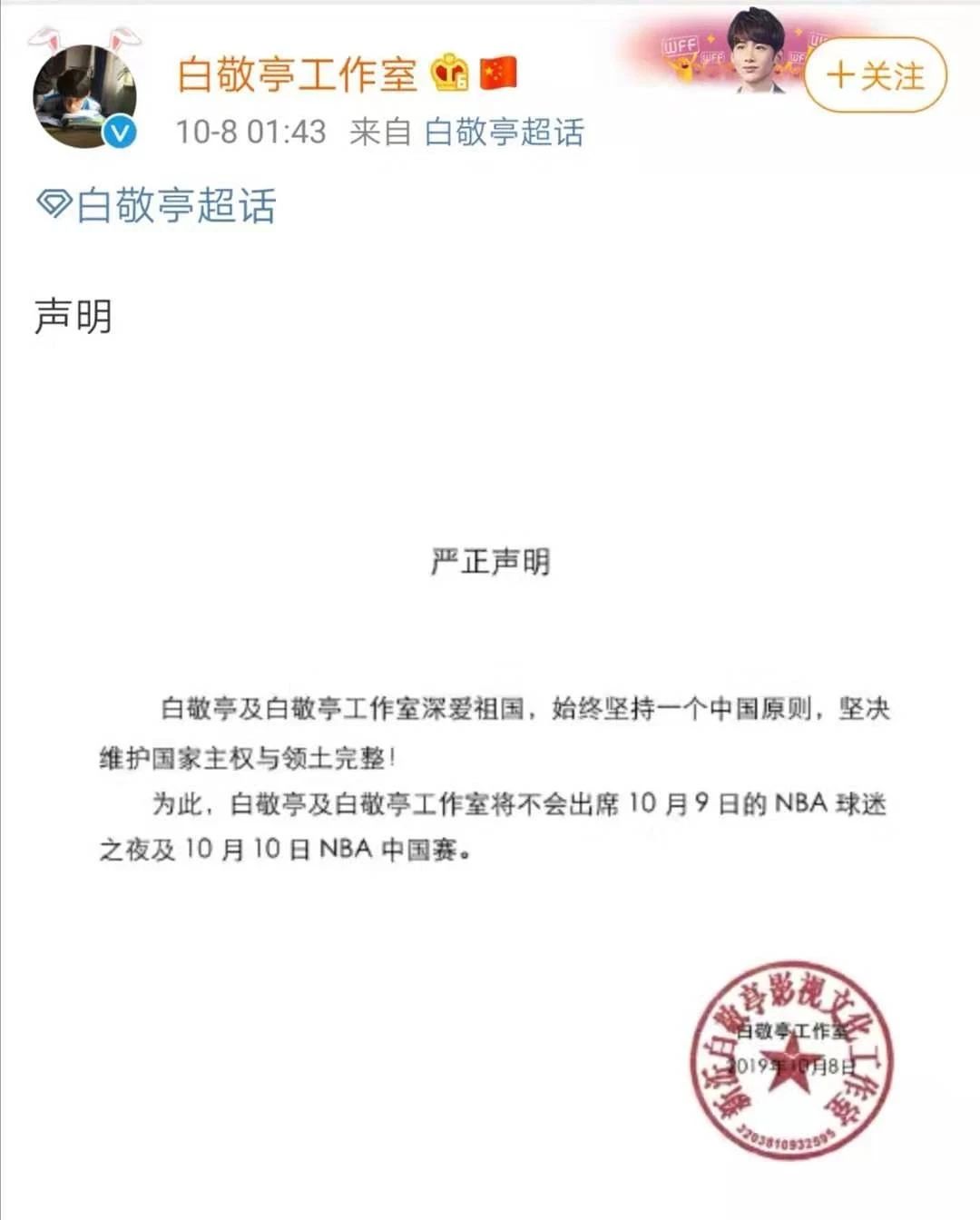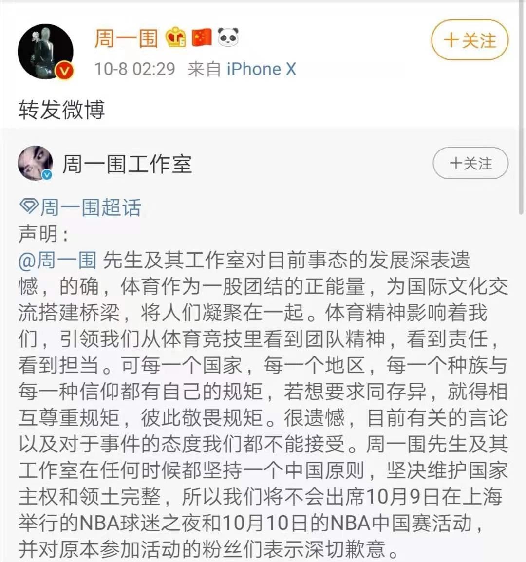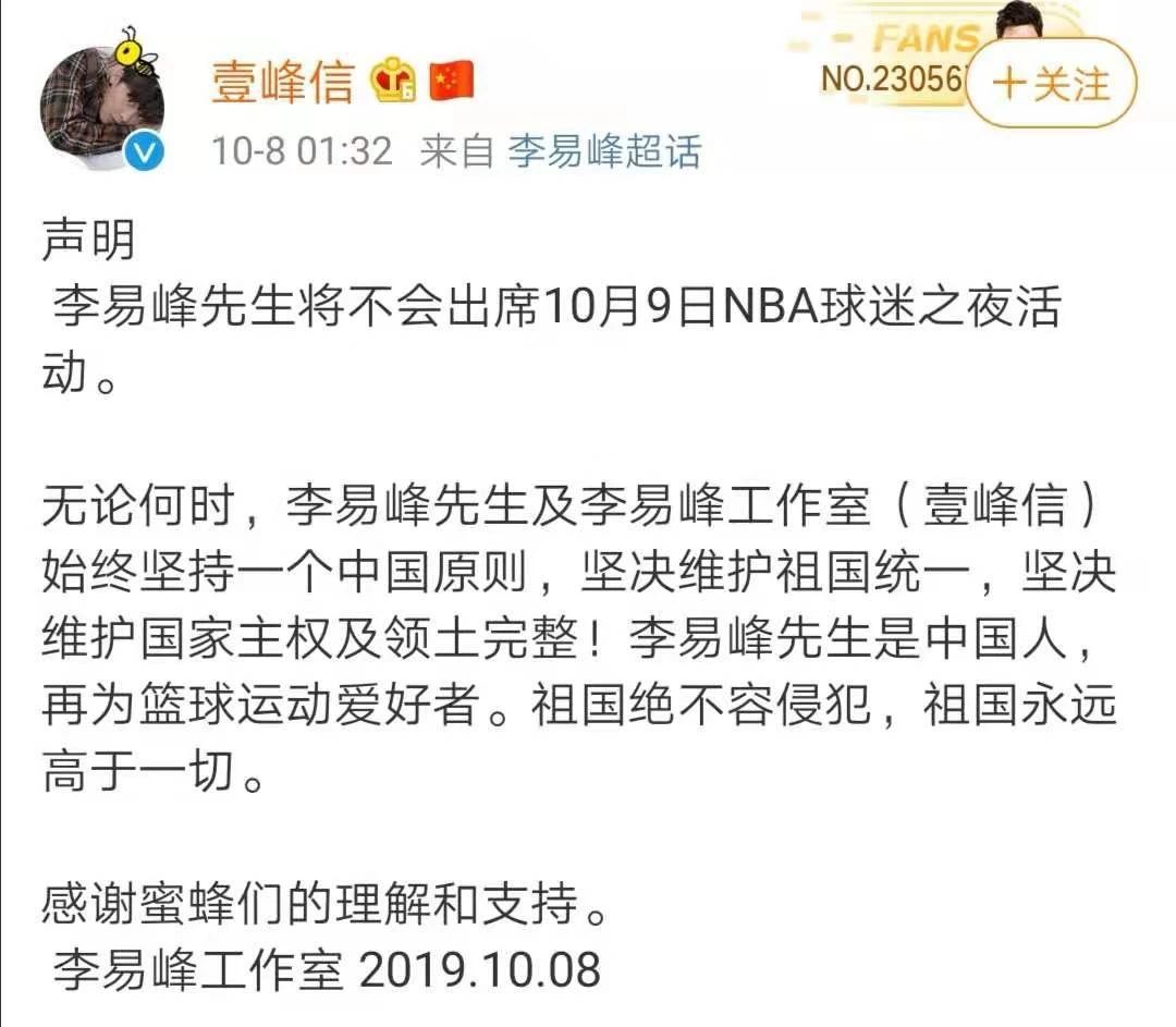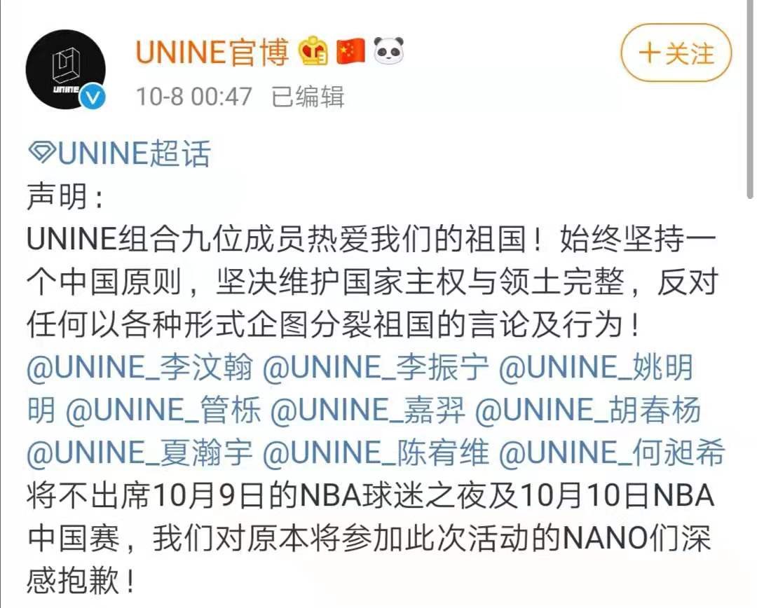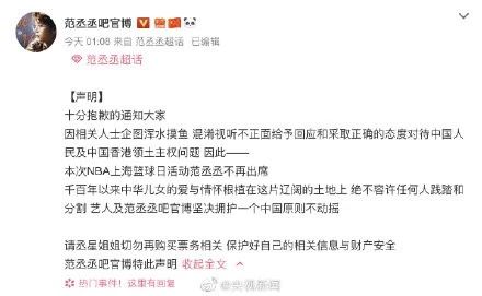 今天凌晨,眾多藝人表態(tài),不會(huì)出席明天或后天的NBA中國(guó)活動(dòng)。
