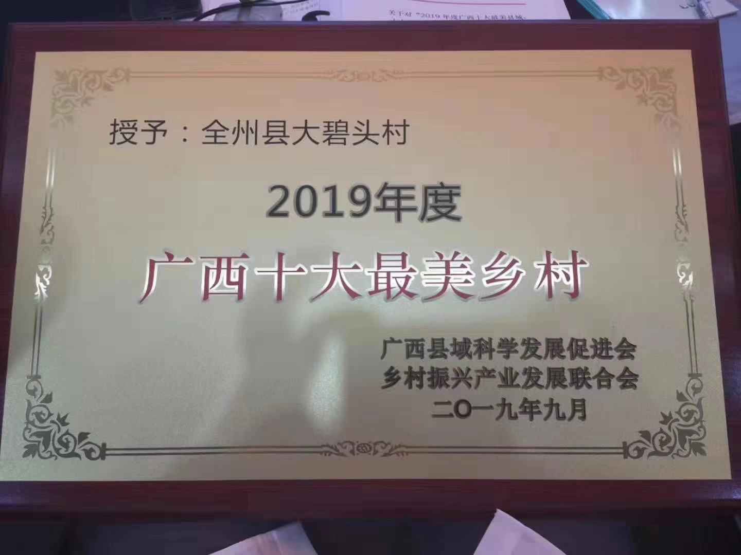 在2019年9月23日我們迎接屬于大碧頭的榮譽2019年度“廣西十大最美鄉(xiāng)村”之稱。美是各級領(lǐng)導、同事以及我們最美的村民攜手共創(chuàng)的,這份榮譽是大家有目共睹的。