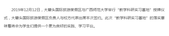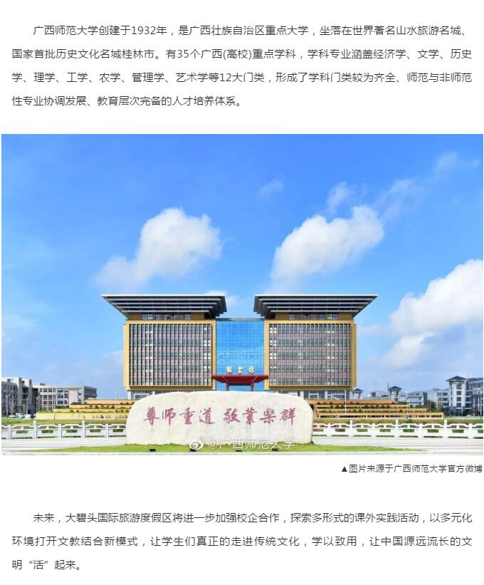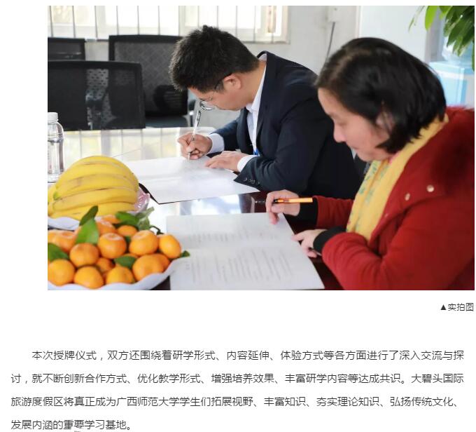 國家AAAA級景區(qū)大碧頭國際旅游度假區(qū)與廣西師范大學(xué)教學(xué)科研實(shí)習(xí)基地正式授牌簽約!